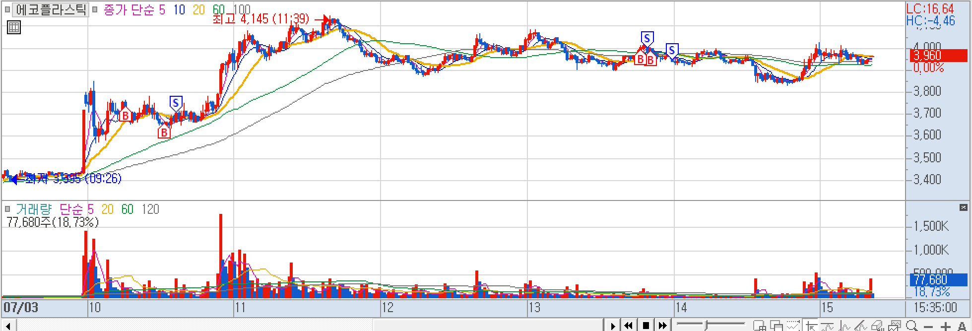 에코플라스틱 : 삼륭물산, 씨티케이에 이은 플라스틱 테마. 얘네가 먼저 간줄 모르고 수급만 보고 처음 진입. 첫 매수후 올릴자리에서 안올려서 그냥 본절. 두 번째 매매는 눌림 때 매수했는데 홀딩 중에 외인 수급이 이탈된 업데이트를 못봐서 빠져나올 기회를 놓쳤다. 손절.