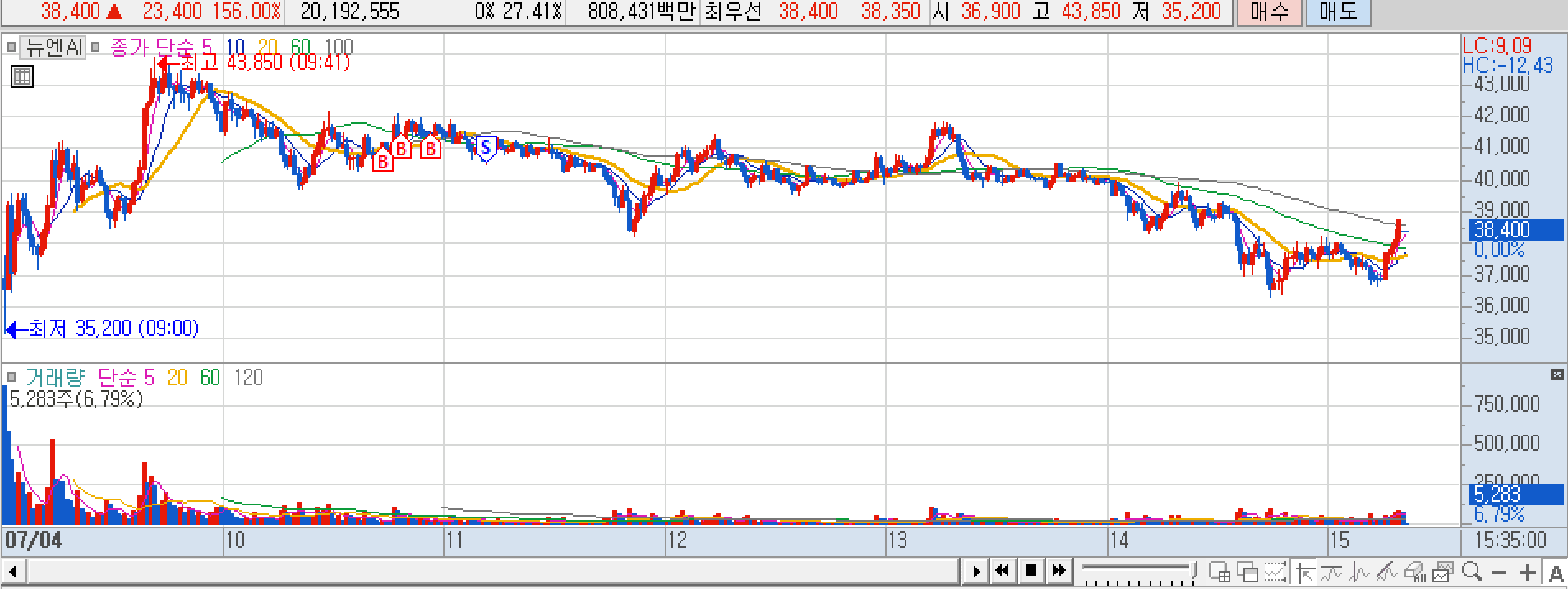 뉴엔AI : 장이 너무 안좋아서 신규상장주로 매매. 지지못해서 손절.