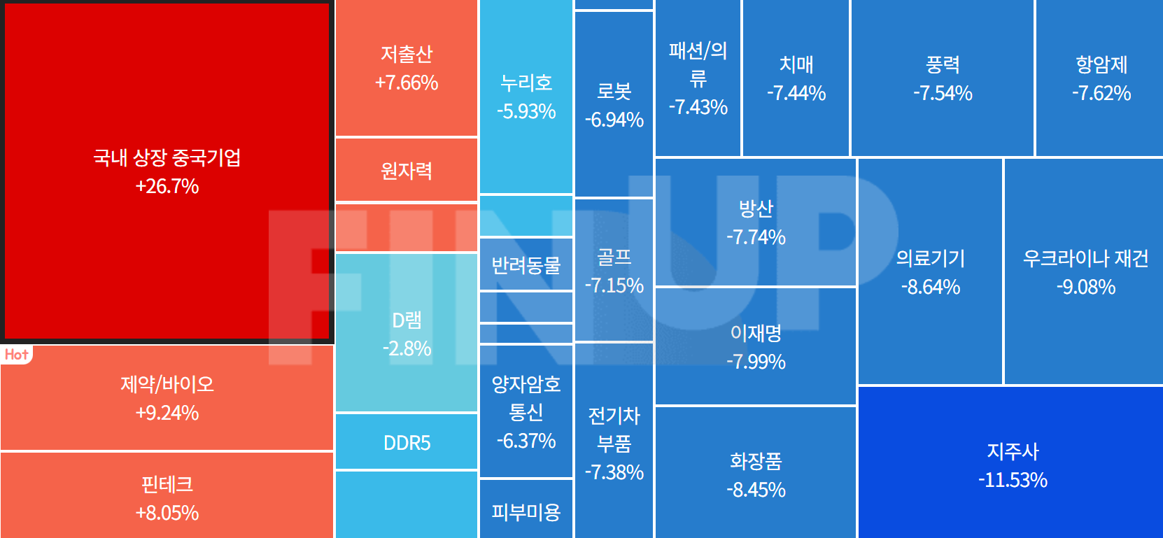 * 오늘은 전반적으로 시장이 폭락해서 테마가 뚜렷하진 않았다. (중국테마 빼고)