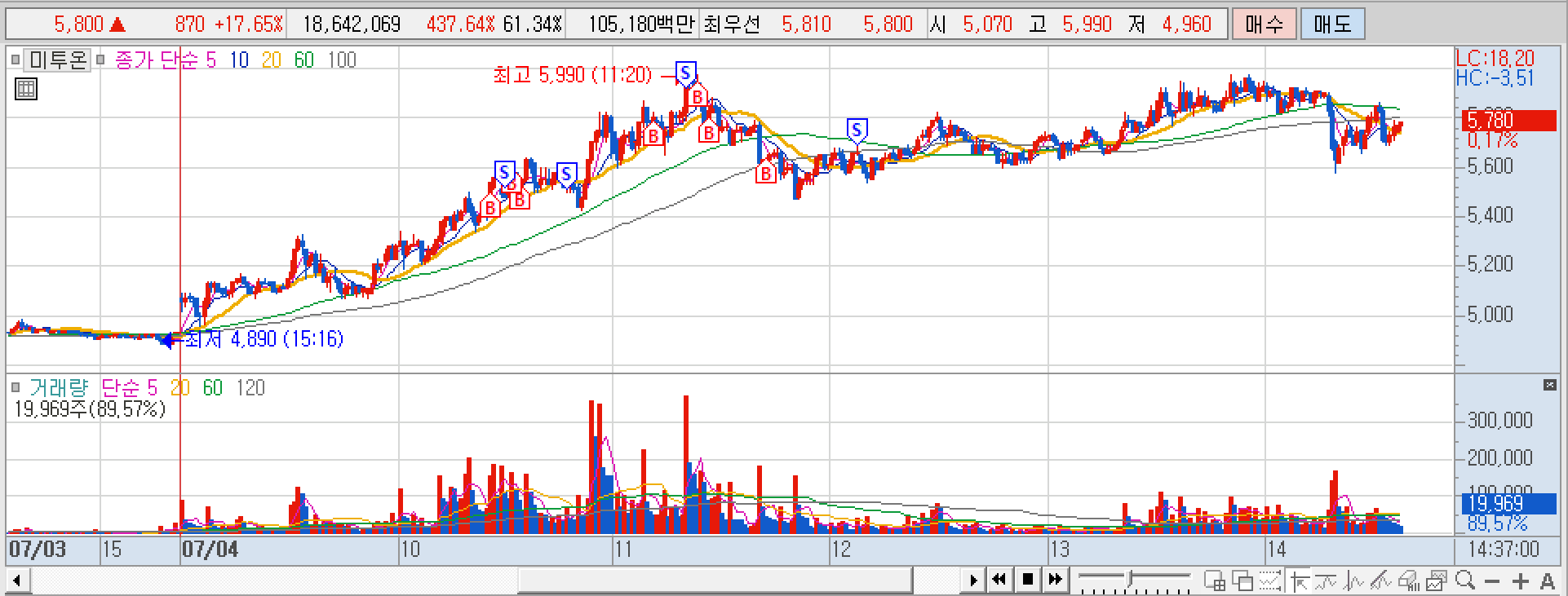 - 미투온(+17.65%)