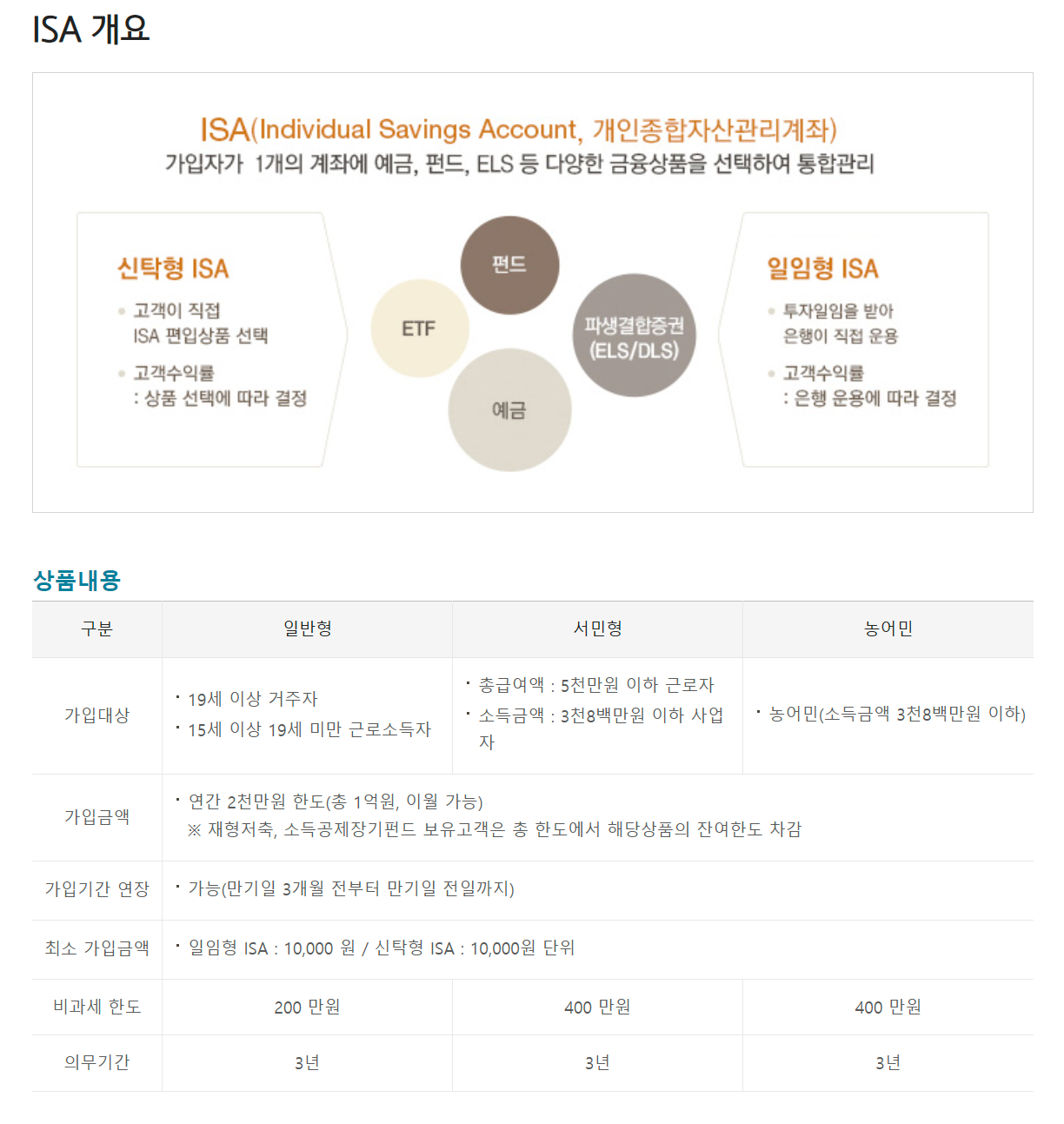 ✅ 요약ISA(개인종합자산관리계좌), IRP(개인형퇴직연금), 연금저축은 모두 ‘세제 혜택이 있는 금융상품’이다.하지만 목적·운용방식·세금혜택 구조가 다르다. ISA는 자산관리용 절세 계좌, IRP는 퇴직연금용 절세계좌, 연금저축은 노후 준비형 절세계좌라고 보면 된다.세제 혜택은 공통적으로 ‘과세이연’ 또는 ‘세액공제’ 형태로 제공되며, 목적에 맞게 조합하면 절세 효과를 극대화할 수 있다.💡 핵심 내용1️⃣ ISA (Individual Savings Account, 개인종합자산관리계좌)한 줄 정의👉 예금, 펀드, ETF, 채권 등 여러 금융상품을 한 계좌에서 관리하면서 이익에 대한 세금을 깎아주는 ‘절세 통합계좌’.기본 구조가입 대상: 만 19세 이상 (근로소득이 있는 만 15세 이상 가능)납입 한도..